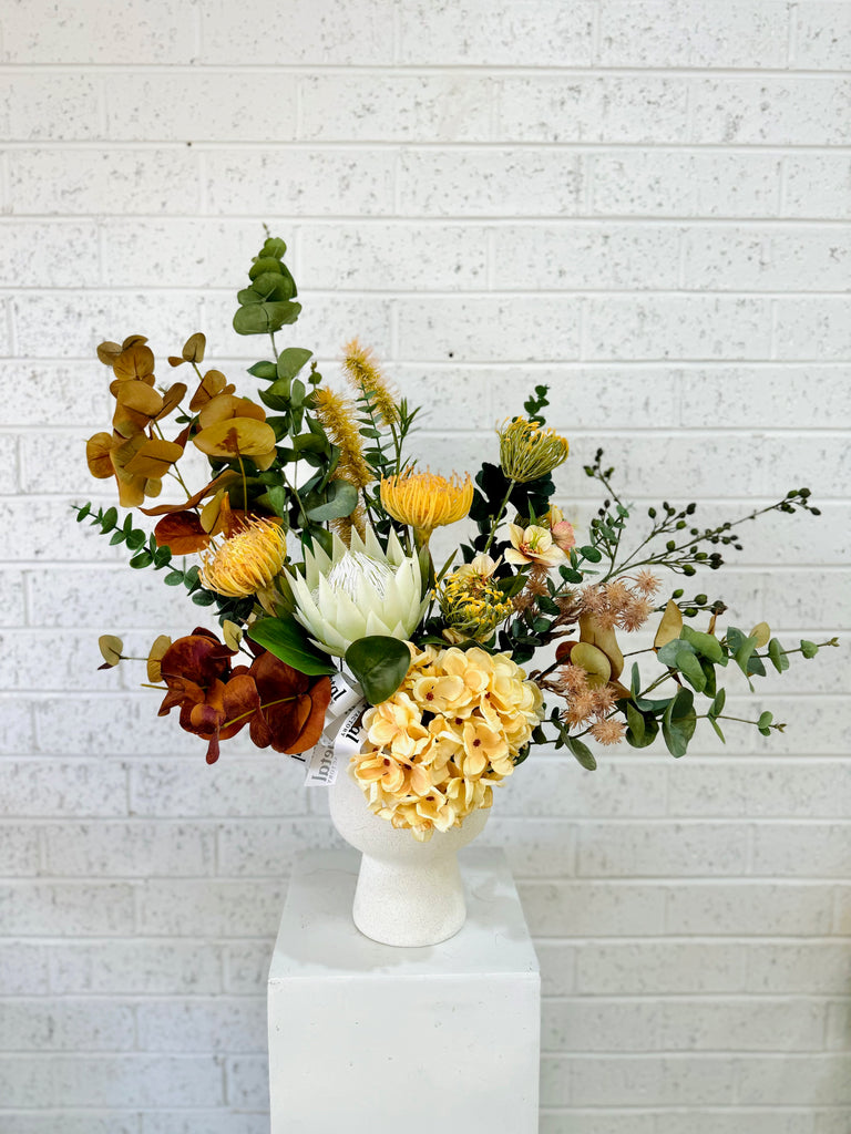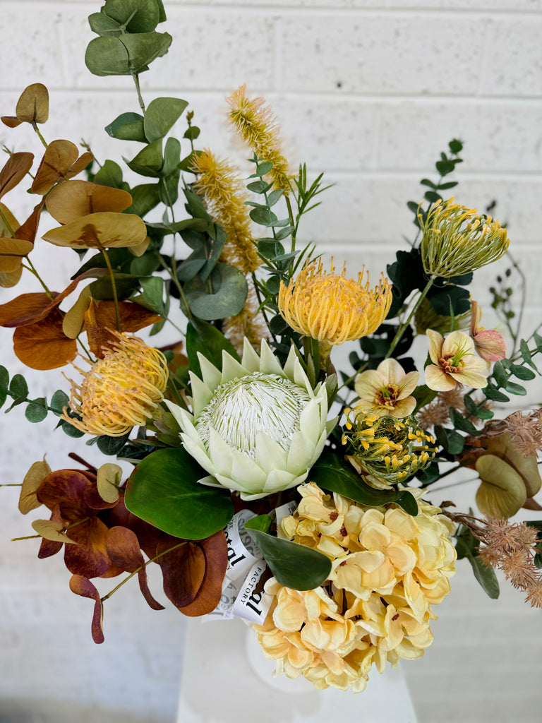 Alyssa has all the sweetest artificial flowers. Complemented with various native foliages.