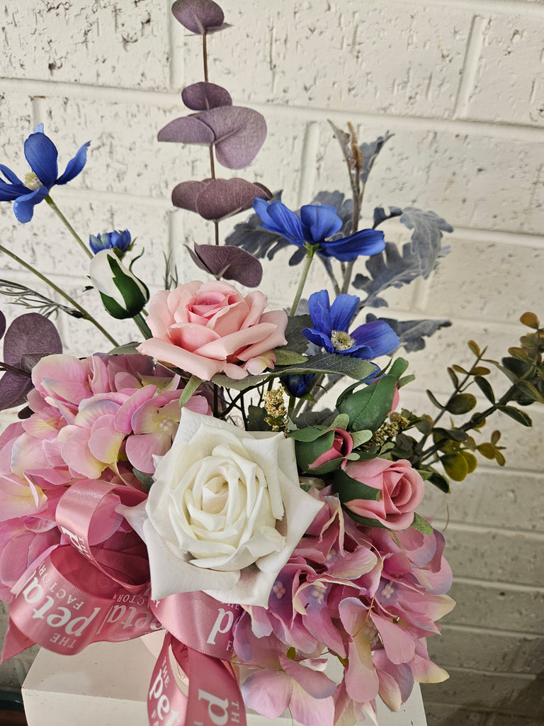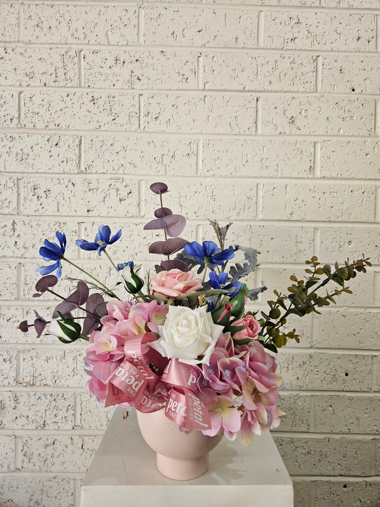 Set into a ceramic pot, Laura is the ultimate statement arrangement, featuring the best artificial blooms.