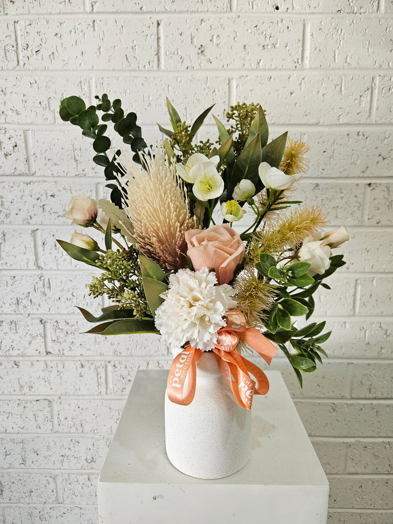 Nuetral and elegant, this artificial flower arrangement is adorned with all the very best flowers.