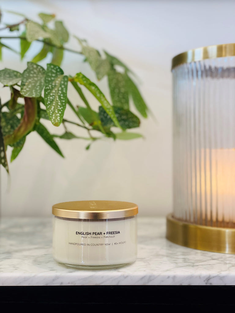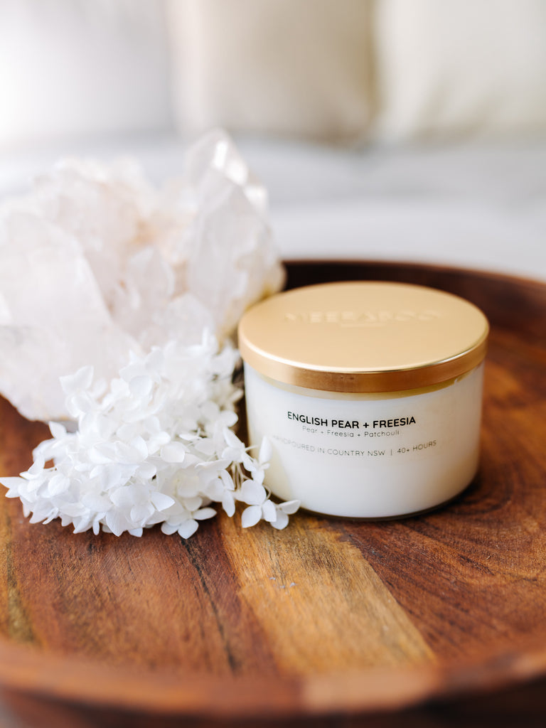 Mature, worldly and sophisticated, this scent envelopes your space with fresh notes of ripe pear, patchouli and white freesias. As delicious as a long walk in an English garden on a spring day.