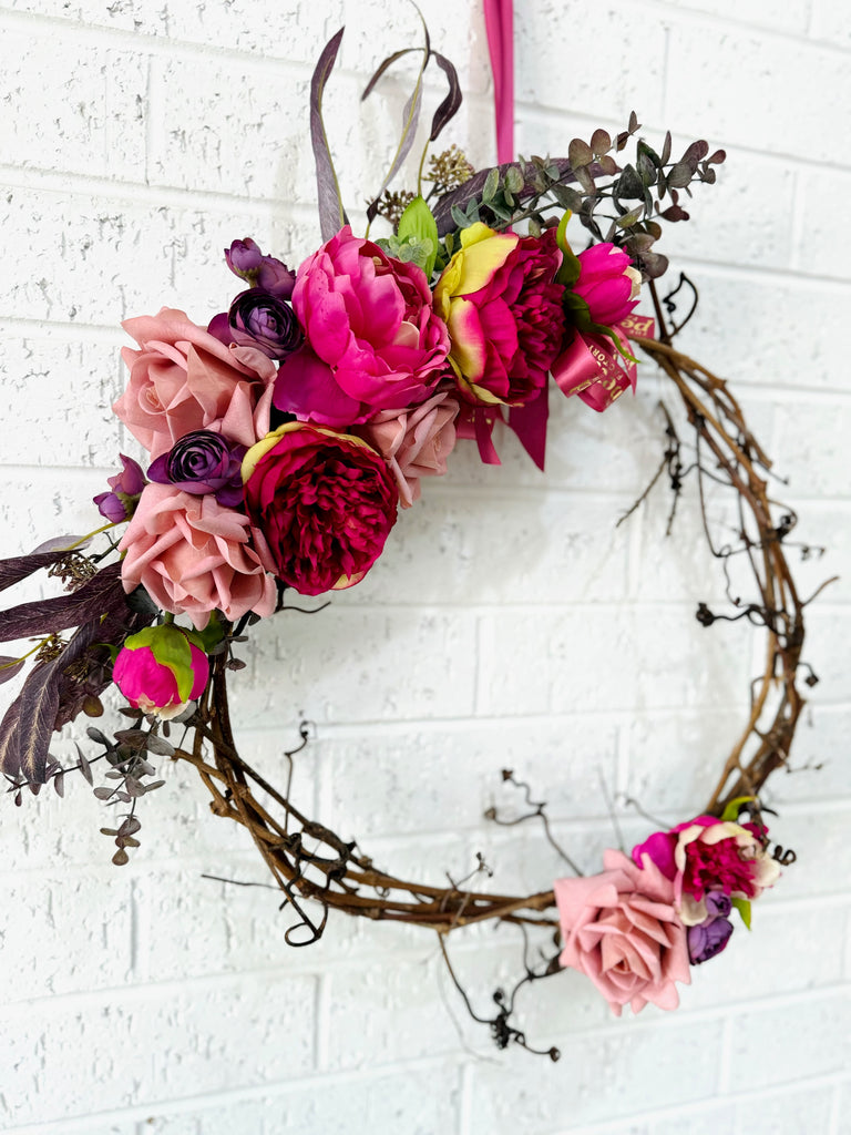 Unique, one off wreaths made by our talented team members featuring a mix of dried Flowers