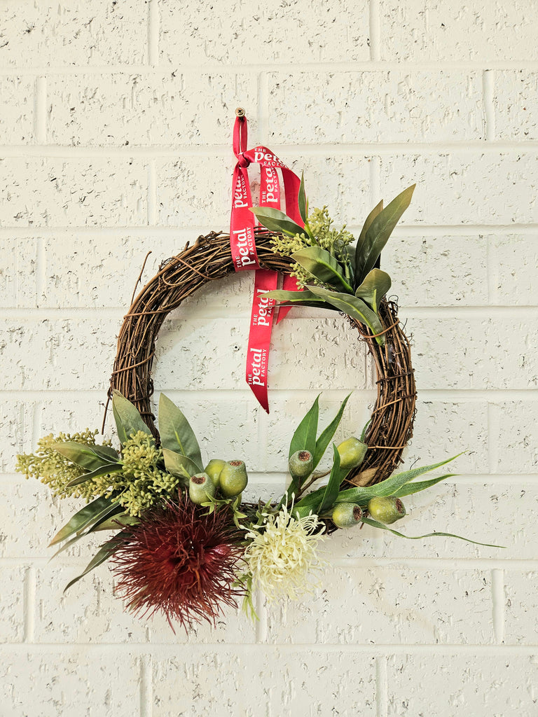 Unique, one off wreaths made by our talented team members featuring a mix of artificial Flowers