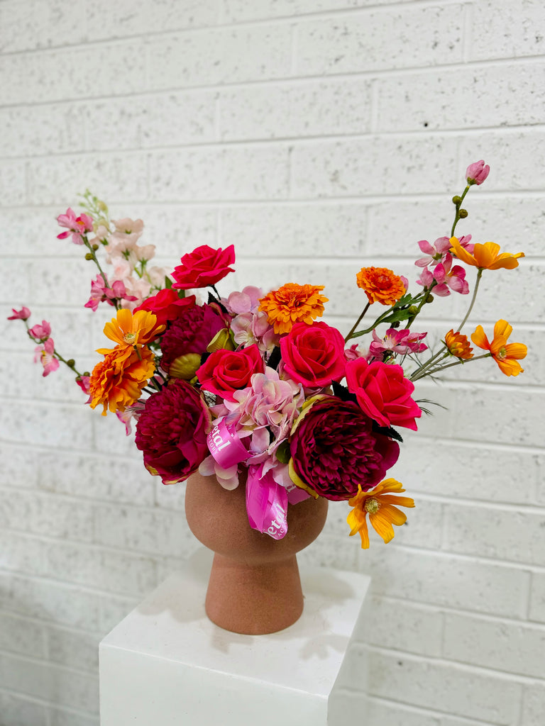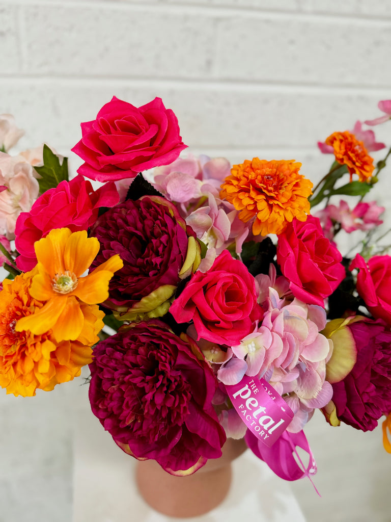 Set into a pastel textured ceramic pot, Lulu is a delightful artificial floral arrangement in the highest quality flowers.